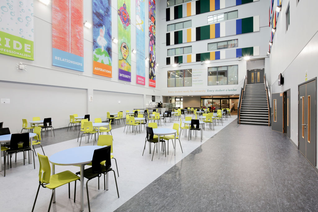 This project comprised the construction of new facilities for separate boys’ and girls’ academies, which are joined by a shared specialist teaching and kitchen/dining area, followed by the subsequent demolition of the original school structures.