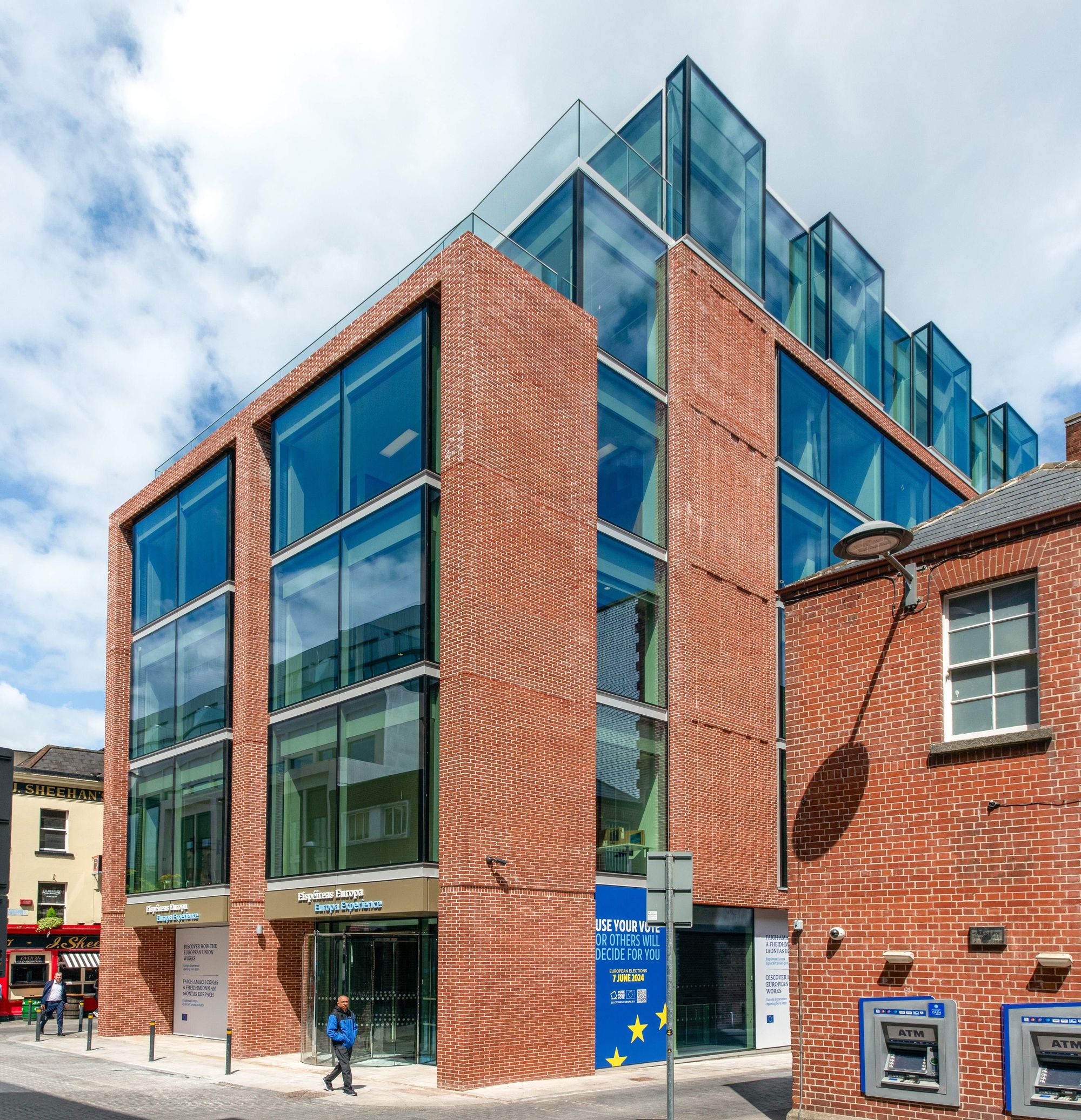 The building is the new European Union Liaison Office in the Dublin. Along with enhanced office space Europe House includes the Europa Experience, the aim of which will be to educate visitors in relation to the EU’s work. The interactive experience will include cutting edge multimedia stations and a 360-degree cinema at basement level which will allow visitors to participate in a plenary session of the parliament or take part in a role-play game as a Member of the European Parliament or as an EU commissioner.