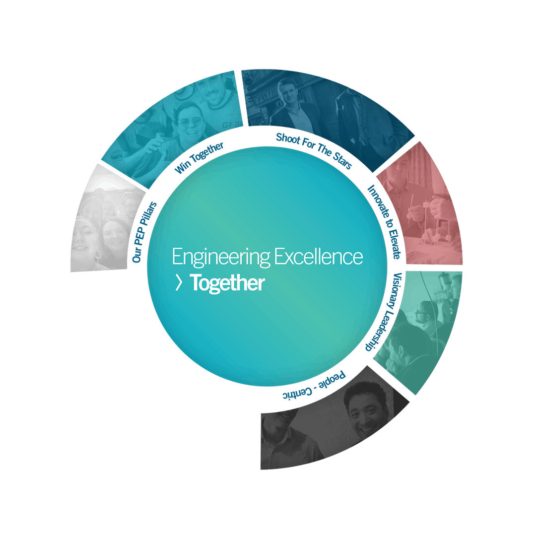 At the heart of our our success is our People Experience Promise, which is built on five foundational pillars. Each of these pillars is closely aligned to one of our core values, highlighting the specific areas of focus that drive our commitment to supporting and empowering our team. Through this framework, we ensure that our people have the tools, resources, and opportunities to thrive, fostering an environment that values engineering excellence and collaborative growth. These pillars are: Win Together, Shoot For the Stars, Innovate to Elevate, Visionary Leadership and People-Centric
