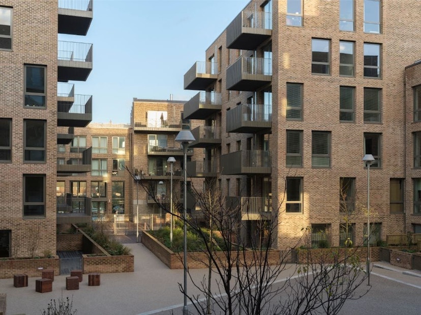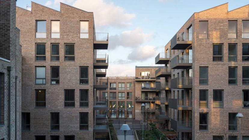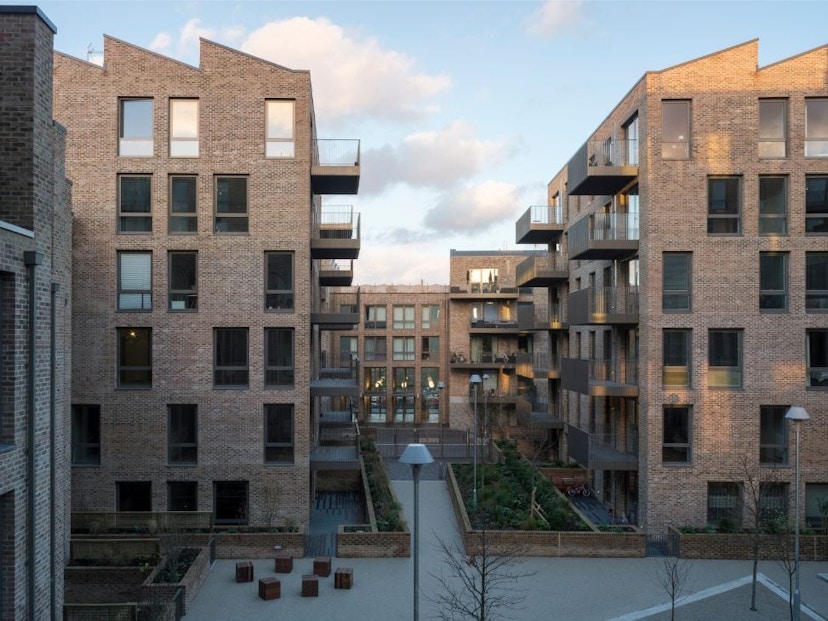 The project also included commercial units in three retained art deco buildings. Sustainability features include district heating, green roofs, roof top allotments and solar photovoltaic panels. The first homes were completed in winter 2013, and the entire phase one was handed over in autumn 2014. The whole development will eventually comprise 550 homes.