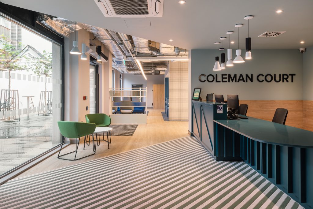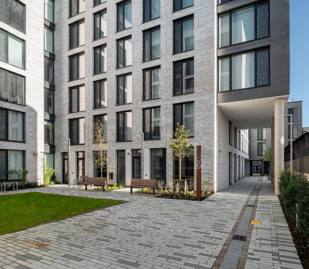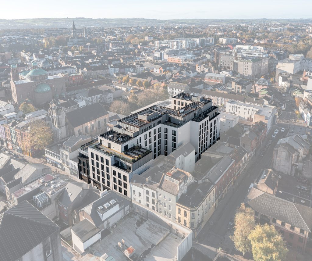 The new student accommodation complex includes the construction of 279 high quality, fully air-conditioned bed spaces. Fully fitted kitchens were installed together with modular bathroom pods. Ground floor level includes restaurant, Café, gymnasium, cinema, library, laundry room, bicycle stores, lounge area, study rooms, management offices and reception. The building extends to 6- storey, stepping down to 5-storey & 4-storey at street front.
