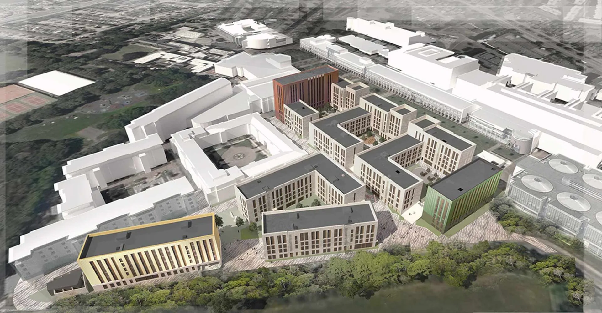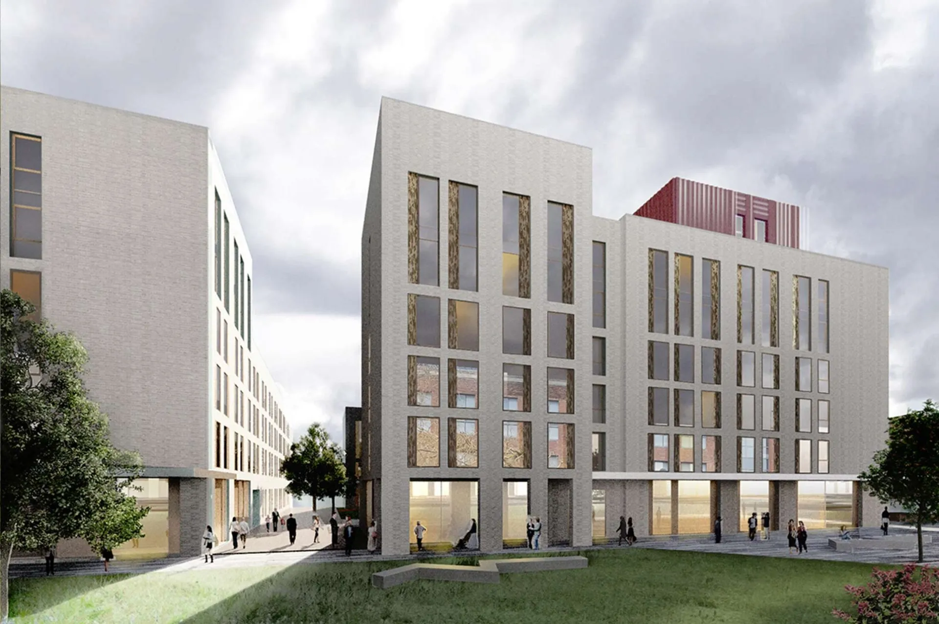 This major new student accommodation development represents a substantial initiative by Dublin City University (DCU) to develop commercially viable, modern, appealing and environmentally friendly student housing on campus at Glasnevin. The proposed scheme will include 1,240 bed spaces and communal living facilities, arranged across seven blocks of accommodation, ranging from 4 to 10 storeys in height. A sequence of landscaped ‘garden rooms’ provide defined external recreation spaces for residents and allow public access through the site. Central to the success of the scheme has been the creation of high quality and sustainable facilities, which will create ownership, foster wellbeing, and encourage active use. The scheme aims to meet stringent NZEB standards in terms of energy efficiency and will be EXEEED certified.