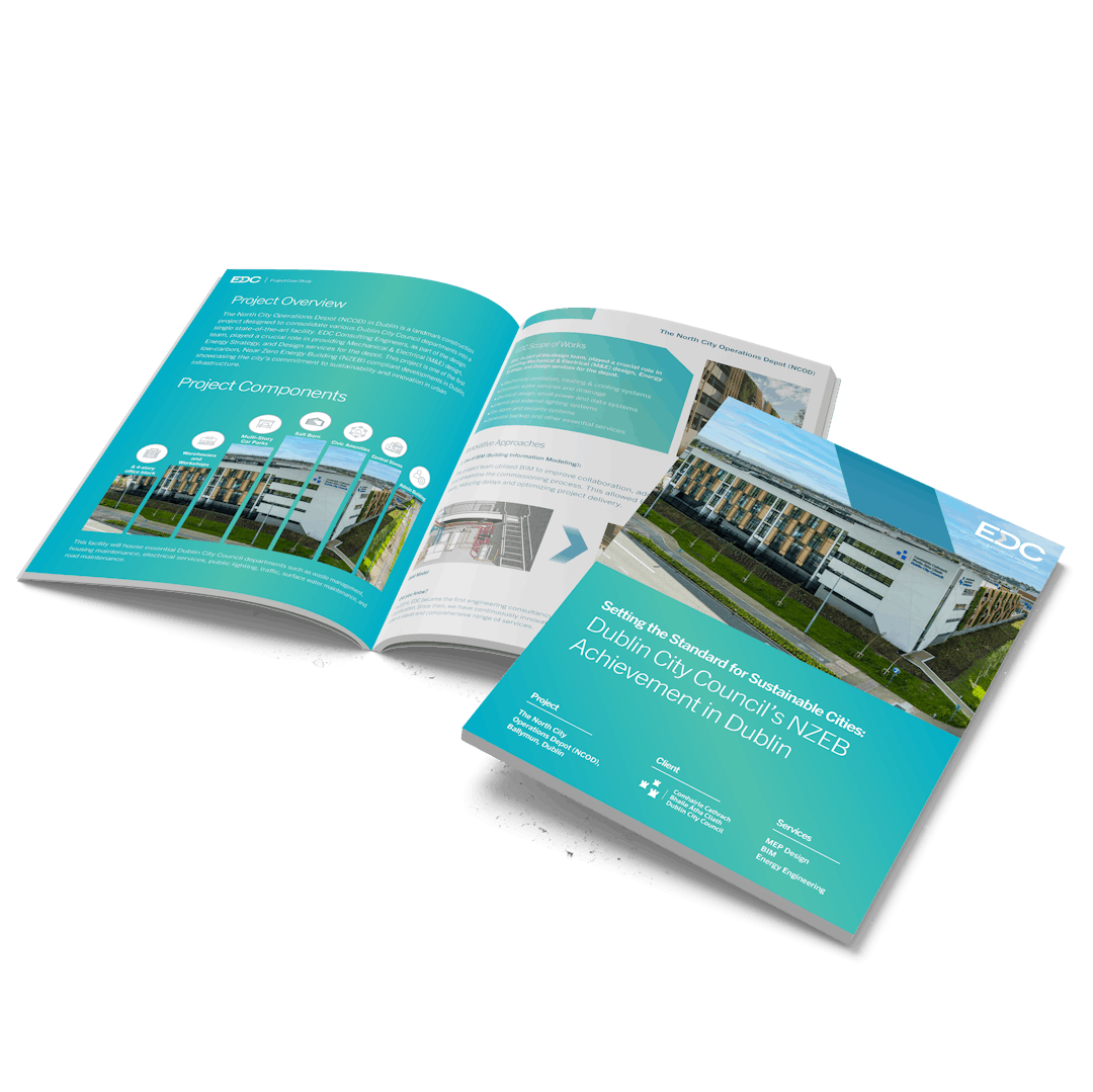 EDC, as part of the design team, are providing the M&E design, BIM & Digital Design, Energy Strategy & Design, on behalf of Dublin City Council, for the development of a consolidated operations depot that will be one of the first low carbon NZEB compliant developments constructed in Dublin.