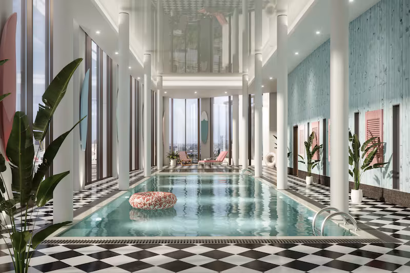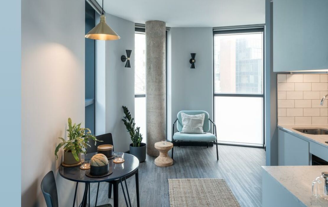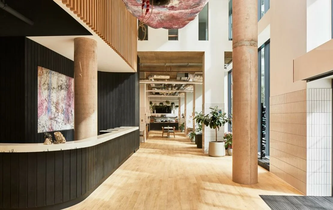 The Ark (Formerly The Collective), known as the world’s largest co-living space, is a 705-room, 21-story co-living development in the central London neighborhood of Canary Wharf. Completed in the summer of 2019, the development was the second project developed by The Collective, a London-based developer focused on co-living. The co-living project caters to young, urban professionals looking for an affordable space with more social interaction with neighbors.