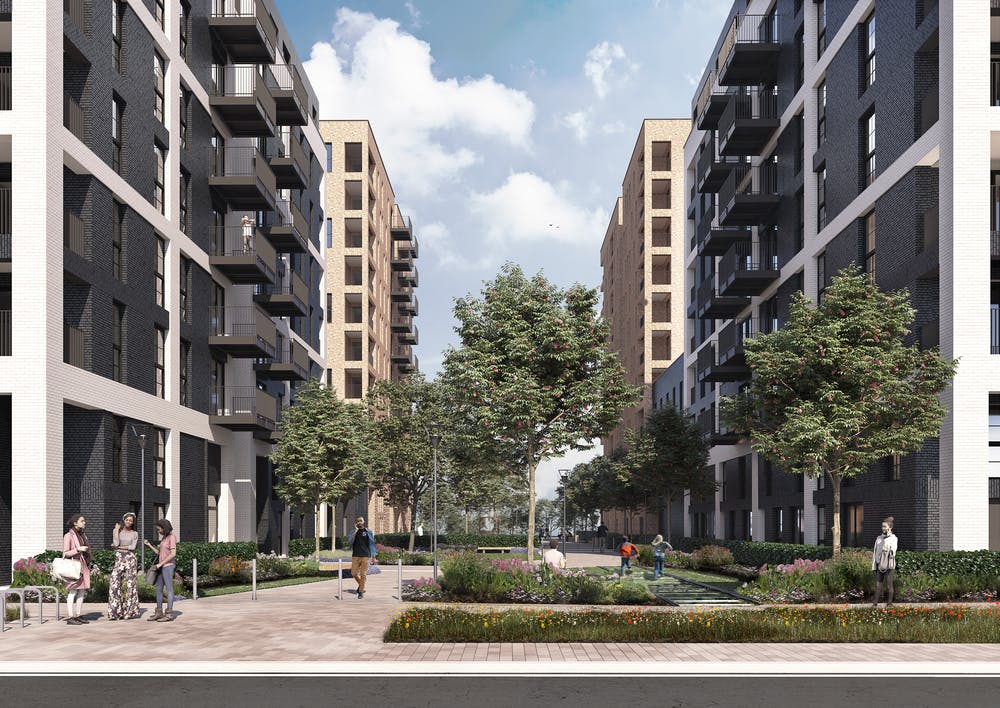 The Crown Trading Centre in Hayes is a £100 million development in West London, comprising 407 high-quality apartments across two buildings, along with five shell and core commercial units. The scheme features podium-level amenity spaces on the first floor, with underground parking beneath.